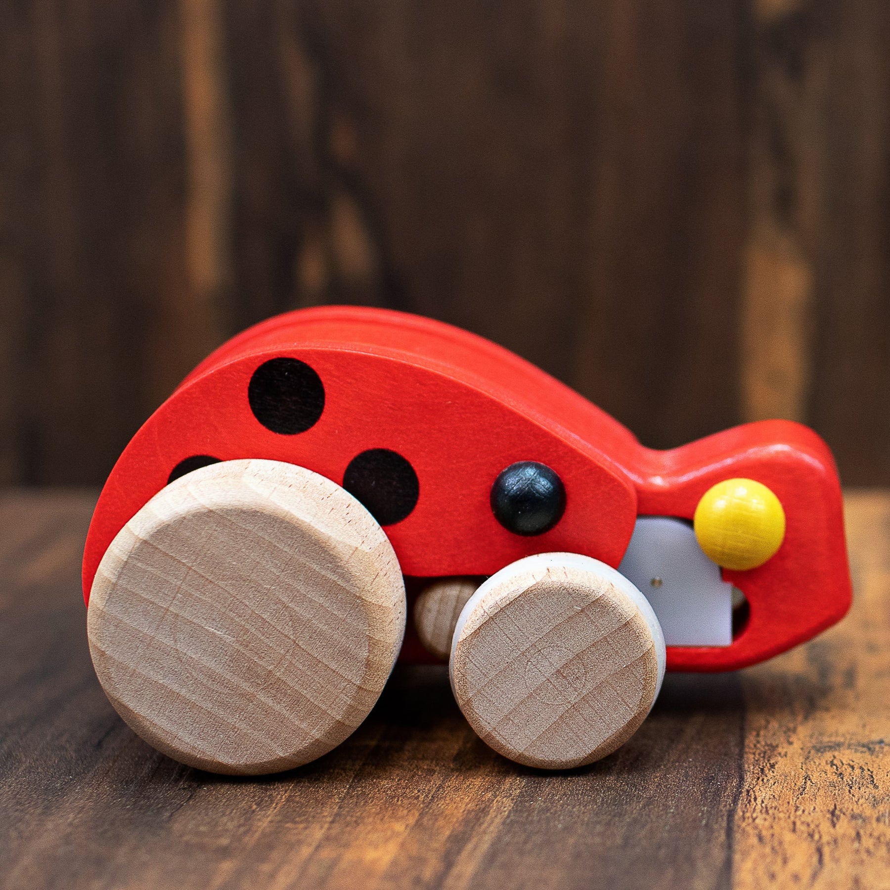 If your little one loves bugs, meet the ladybug, cicada, and caterpillar ready for endless fun! These wooden pull-back toys zoom forward when pulled back and released. Kids will be thrilled watching these charming insects zoom across the floor, sparking imagination and creative play. Crafted in Europe and safe for children aged 3 and up.
