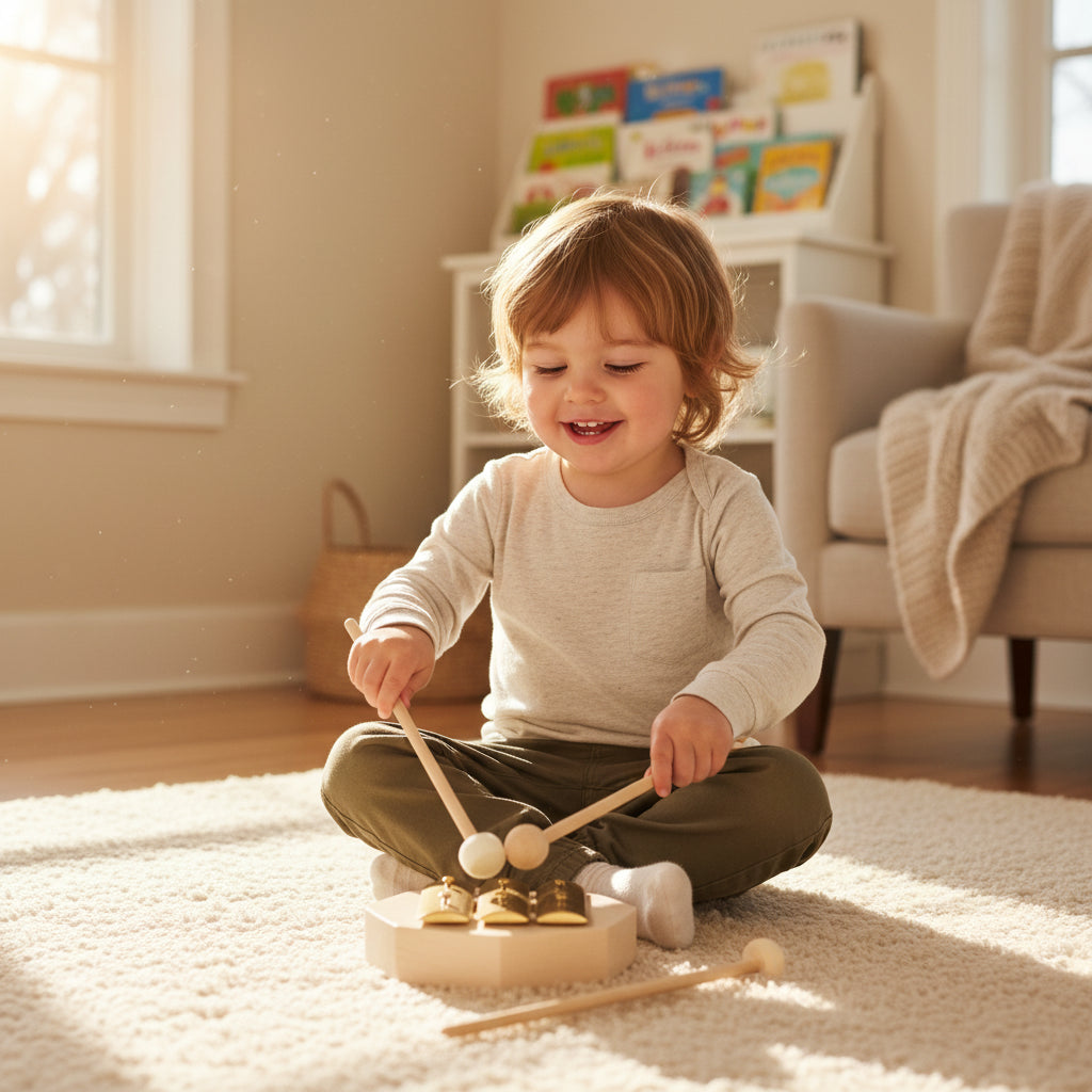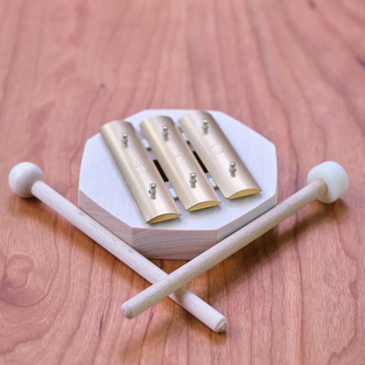 Maple wood, brass plates, 3 tones, with 2 rubber mallets, h-d-e, d-e-g,