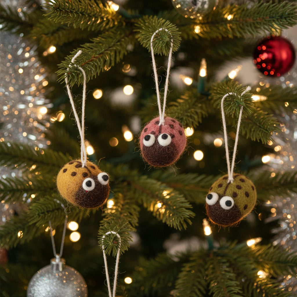 These sweet little Ladybugs are handmade in Nepal from felt. They have their own thread to hang them.  They can be used as decoration on a tree or just for a cute home decor.