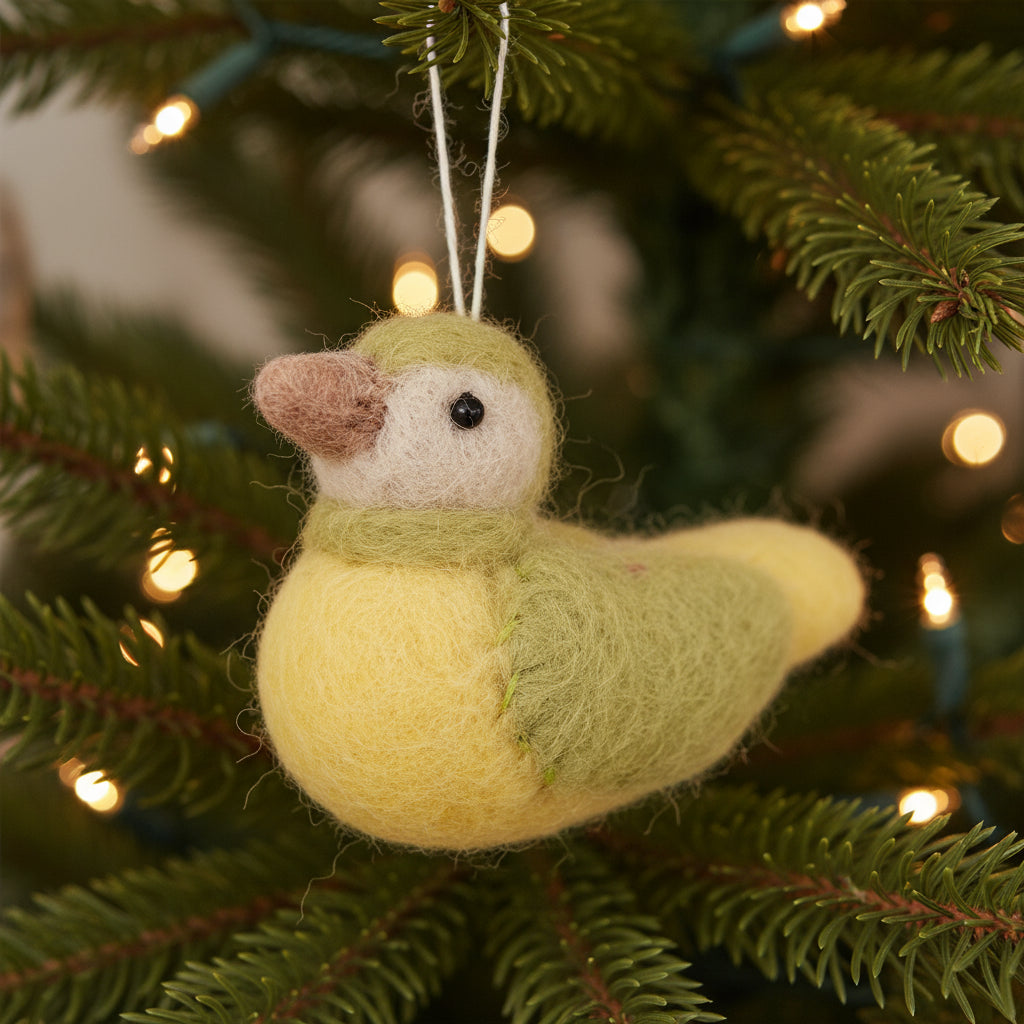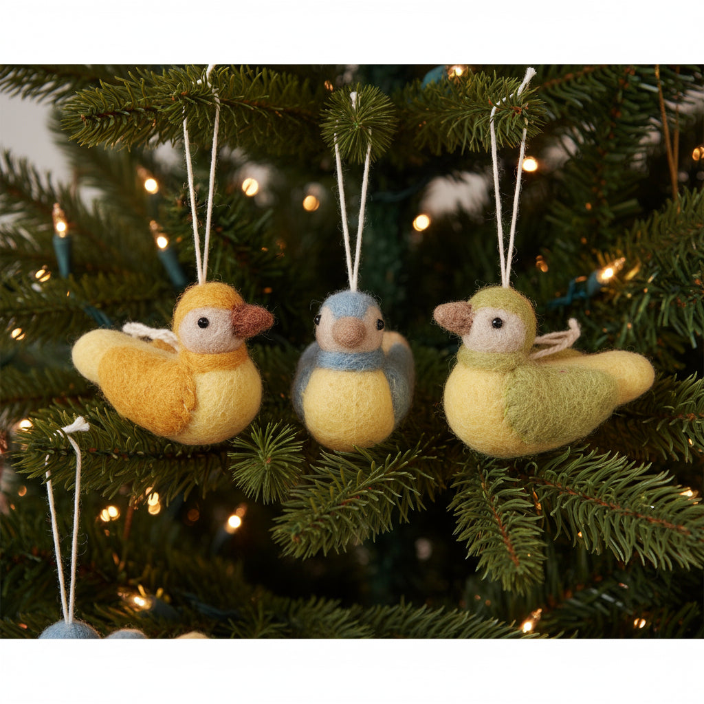 These sweet little birds are handmade in Nepal from felt. They have their own thread to hang them. They can be used as decoration on a tree or just for a cute home decor.